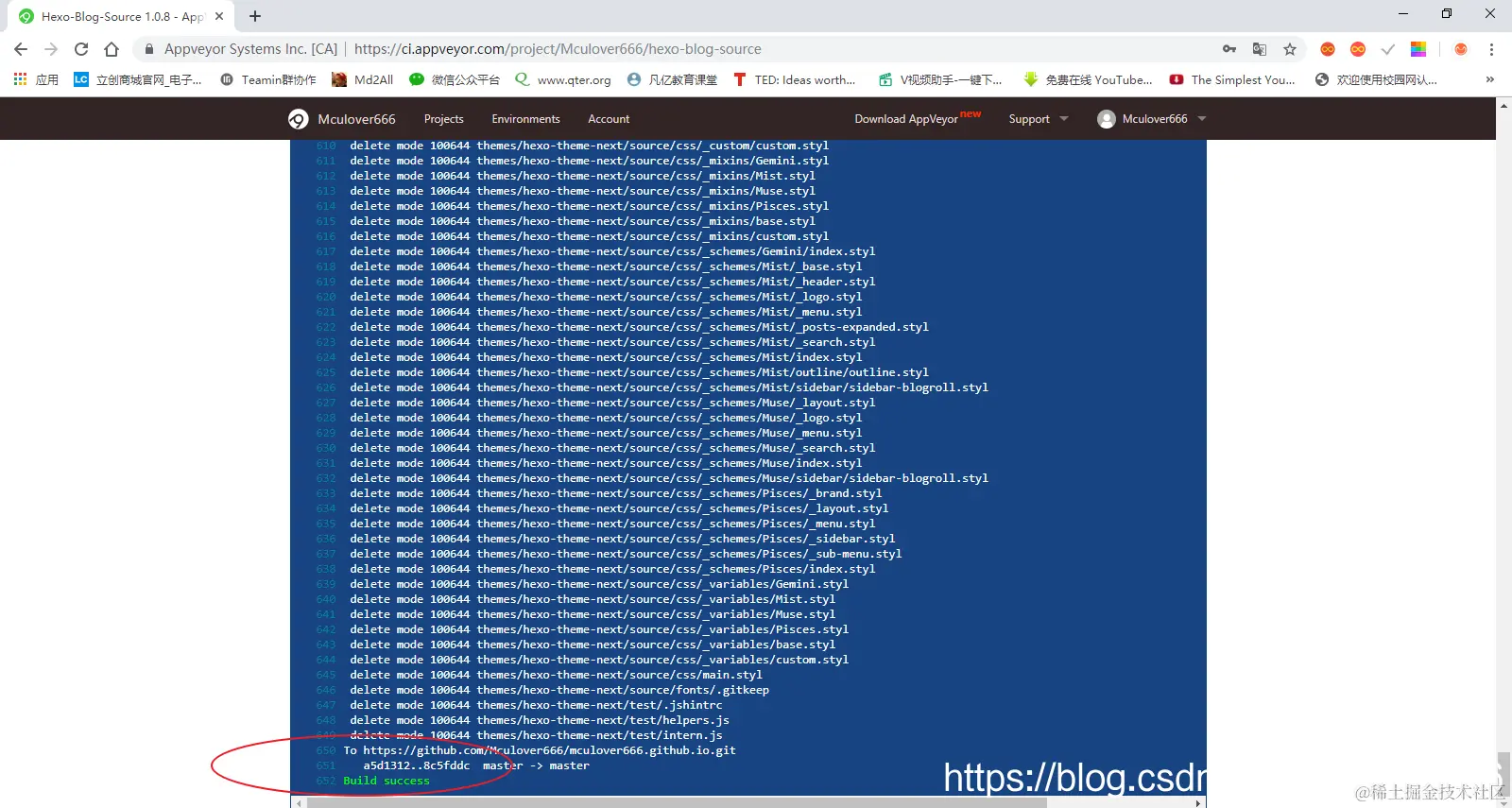 至此配置完成,以后只需要执行:git push将源代码上传到仓库后,Appveyor就会检测到变化,然后自动完成推送和部署。