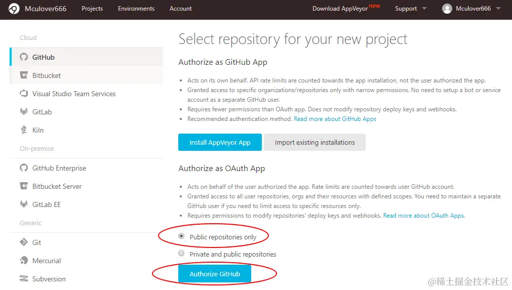 访问AppVeyor登陆页面,使用GitHub账号登陆即可: