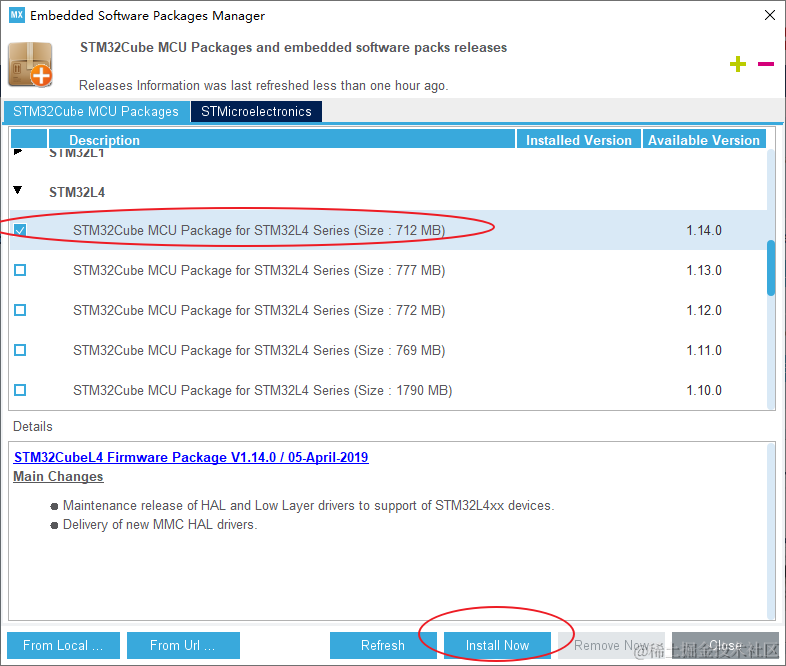 在packages列表中勾选上需要的 MCU Packages, 点击Install Now :