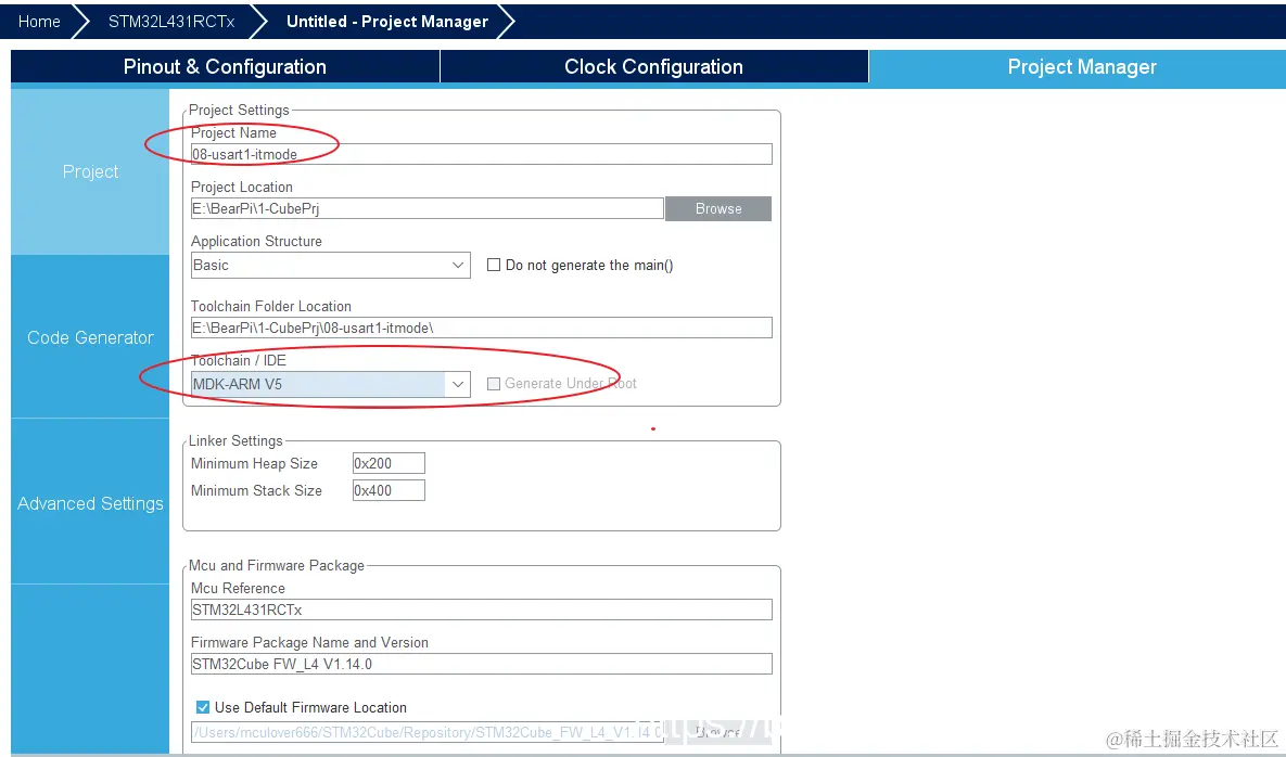 点击GENERATE CODE即可生成MDK-V5工程: