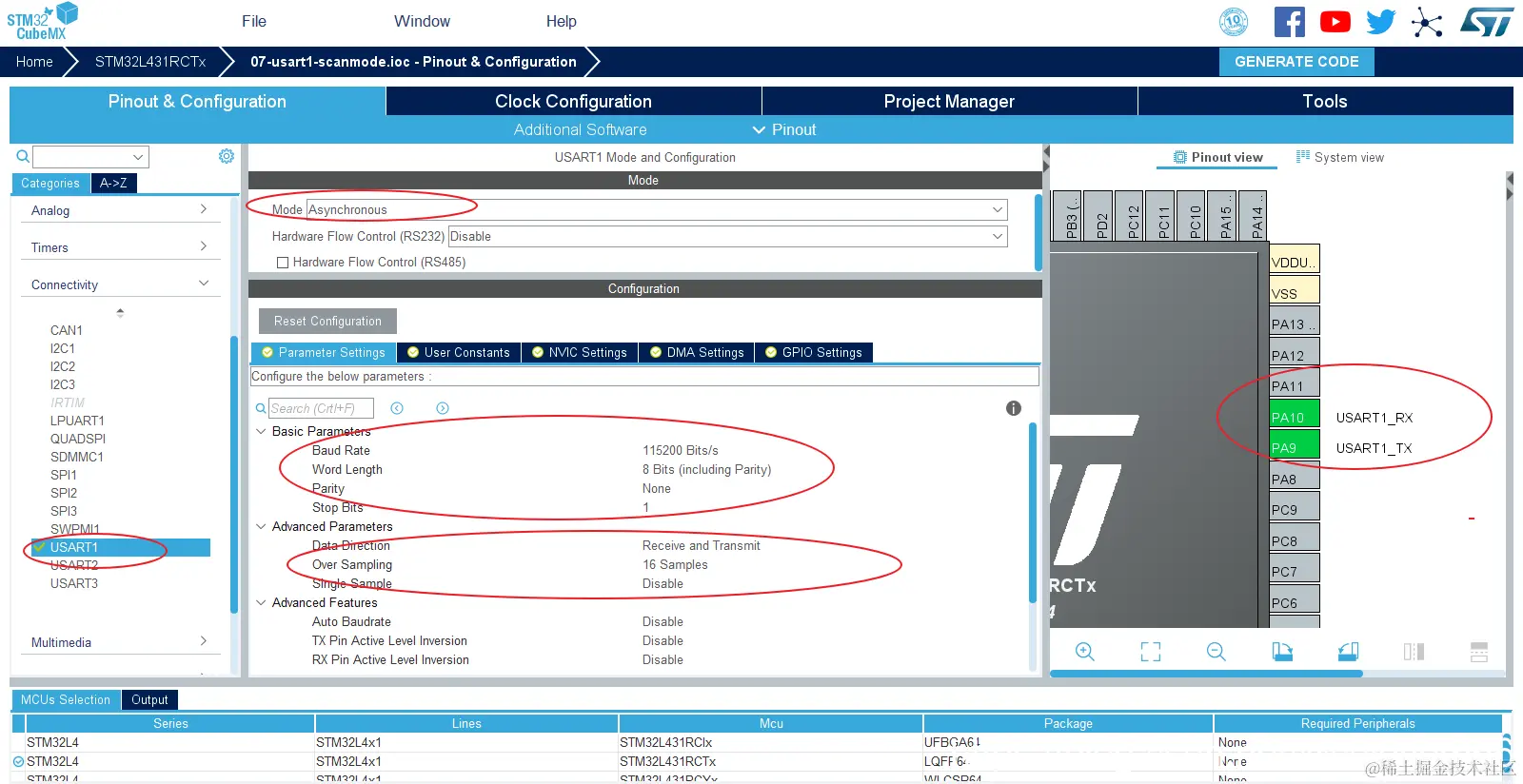 接下来开始配置USART1: