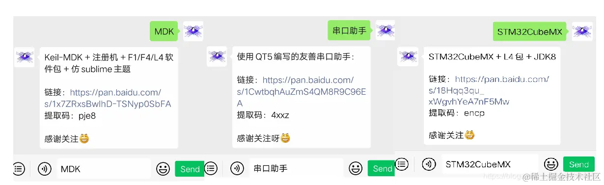 Keil MDK和串口助手Serial Port Utility 的安装包都可以在文末关注公众号获取,回复关键字获取相应的安装包:
