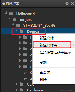 在Demo文件夹右击,选择新建文件夹: