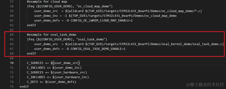 如果 CONFIG_USER_DEMO 宏定义的值是osal_task_demo,则将osal_task_demo.c文件加入到makefile中进行编译。