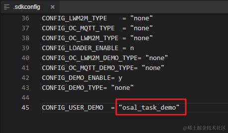 那么,如何配置 CONFIG_USER_DEMO 宏定义呢?在工程根目录下的.sdkconfig文件中的末尾即可配置: