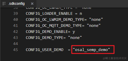 那么,如何配置 CONFIG_USER_DEMO 宏定义呢?在工程根目录下的.sdkconfig文件中的末尾即可配置: