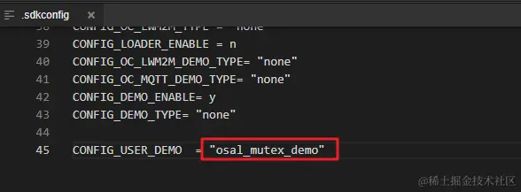那么,如何配置 CONFIG_USER_DEMO 宏定义呢?在工程根目录下的.sdkconfig文件中的末尾即可配置: