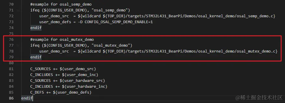 如果 CONFIG_USER_DEMO 宏定义的值是osal_mutex_demo,则将osal_mutex_demo.c文件加入到makefile中进行编译。