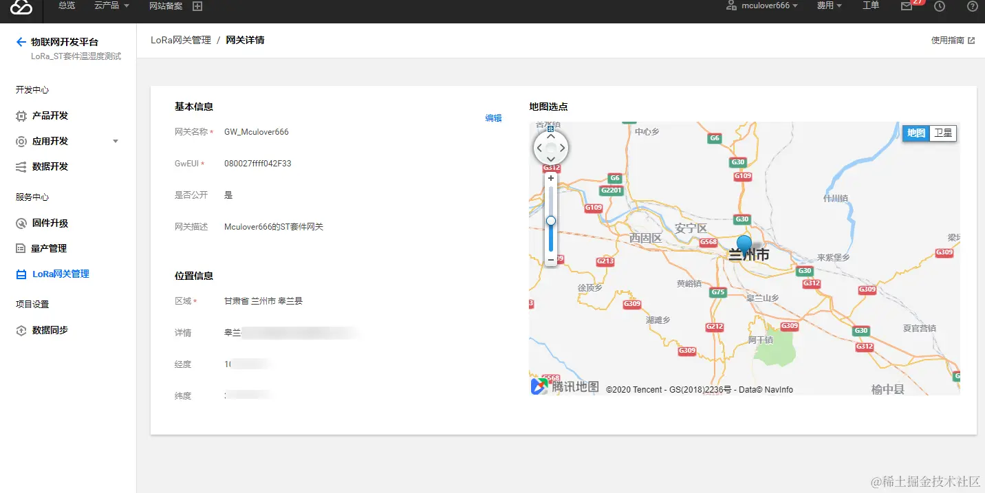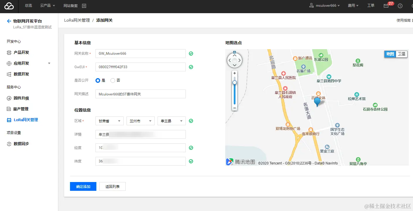 - 网关名称:本示例中填写 GW_Mculover666;