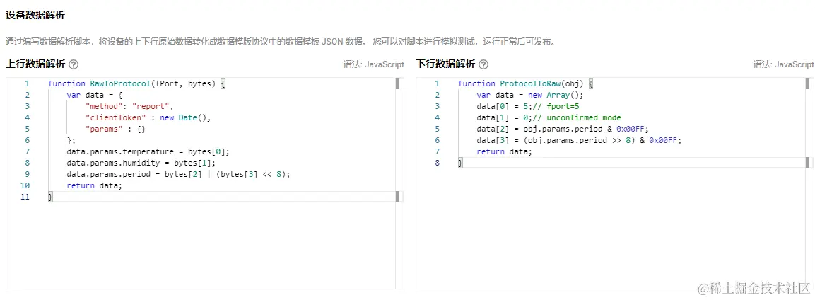 在下行数据解析部分,javascript 示例代码如下: