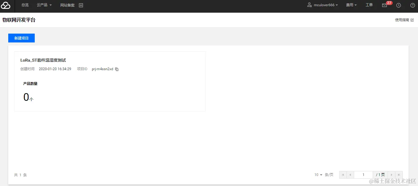 登录 物联网开发平台控制台,选择上文 “控制台操作 LoRa 节点” 中对应的项目。