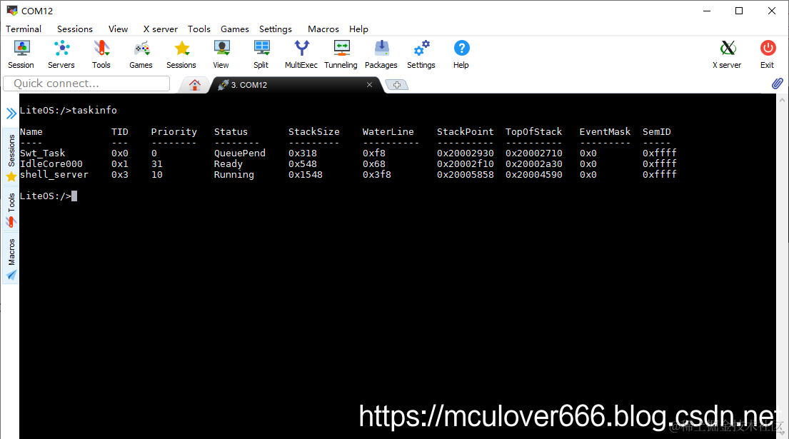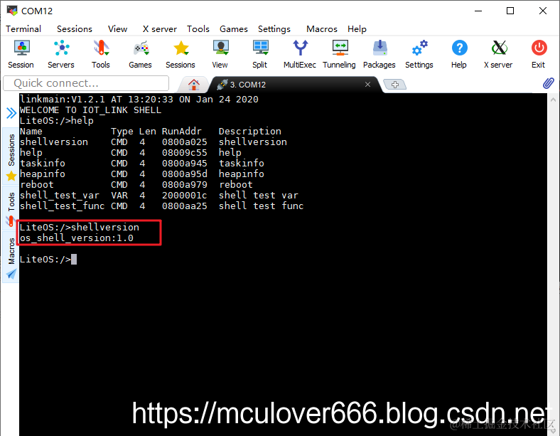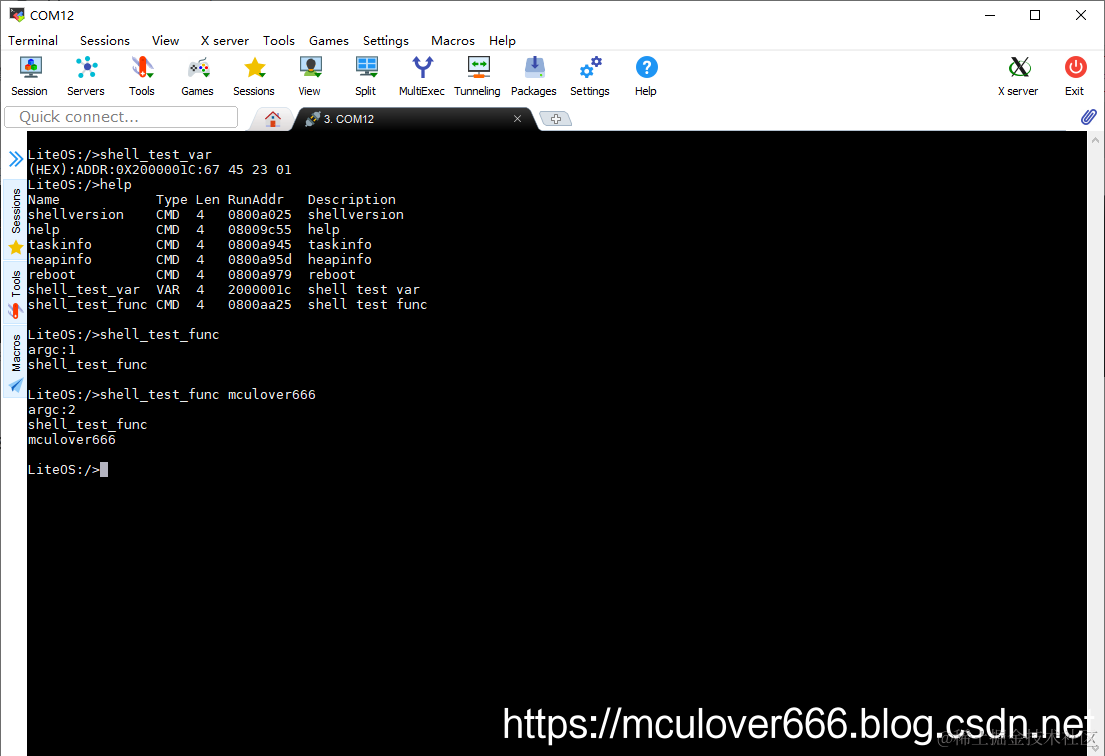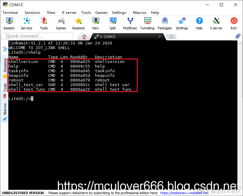 编译,下载之后,使用串口终端软件(不推荐直接使用串口助手,要使用类似xshell的串口终端软件)查看: