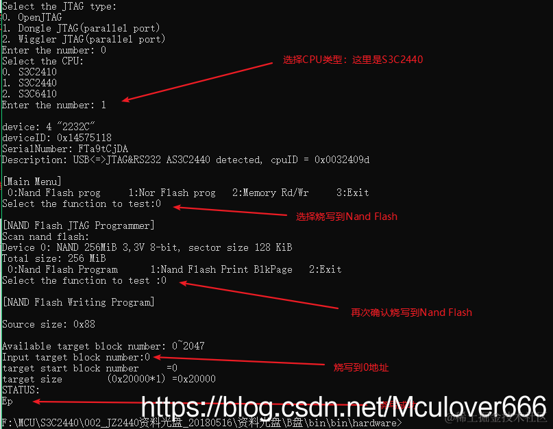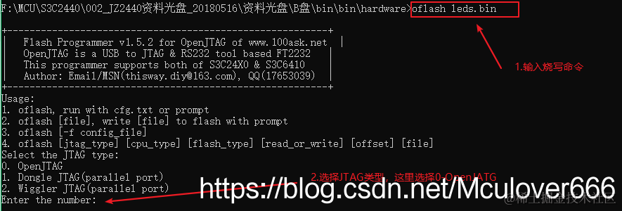 JZ2440开发板烧写程序使用oflash/openJATG。