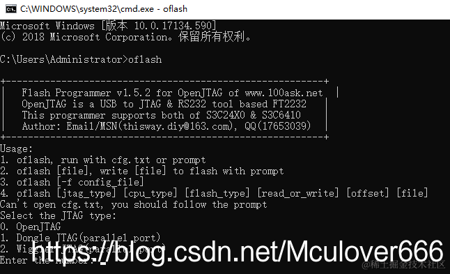 oflash <要烧写的bin文件名> - 选择JTAG类型