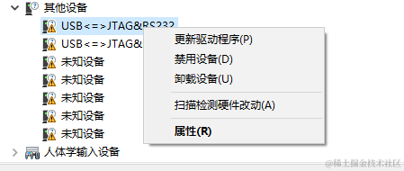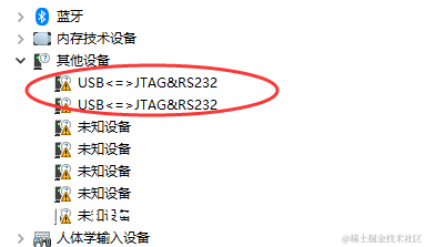 将oflash的USB端口插入电脑后,电脑没有自动安装驱动,打开设备管理器: