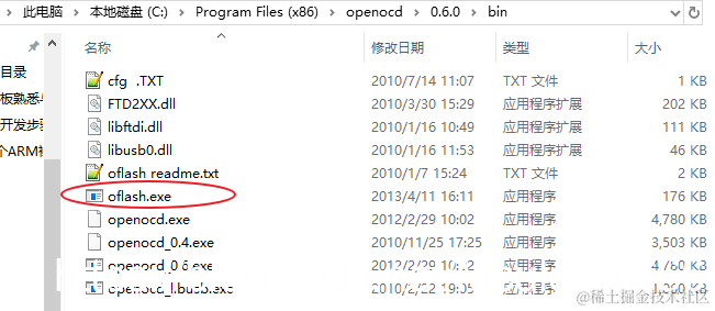 进入openocd安装目录:C:\Program Files (x86)\openocd\0.6.0\bin