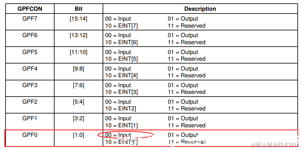2.1.配置GPF0为输入模式(GPFCON)