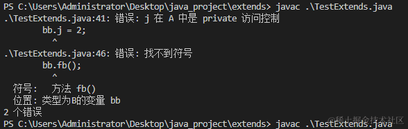 如果将main方法中两行代码的注释bb.j和bb.fb()取消,则编译时会因为访问权限报错: