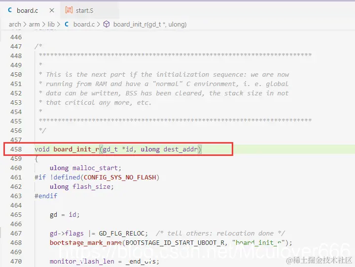 relocate_code的函数体是在start.S中用汇编语言编写的。
