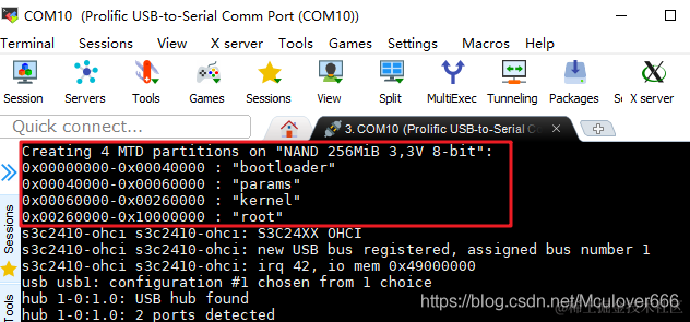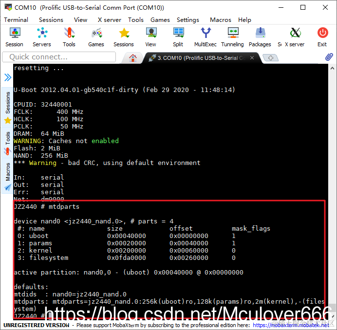 上电之后执行mtdparts查看分区表,分区表已经设置成功,正常打印:
