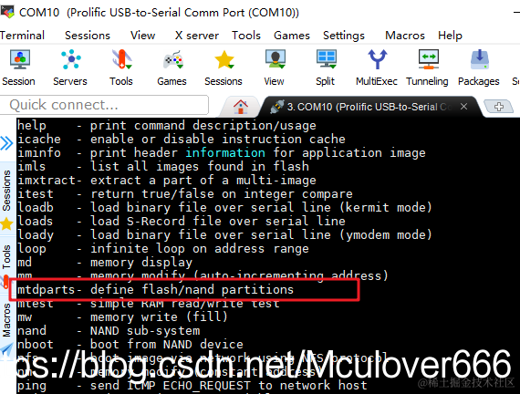 再次编译,编译成功,烧写到开发板,在串口终端中查看结果,已经支持mtdpars命令了: