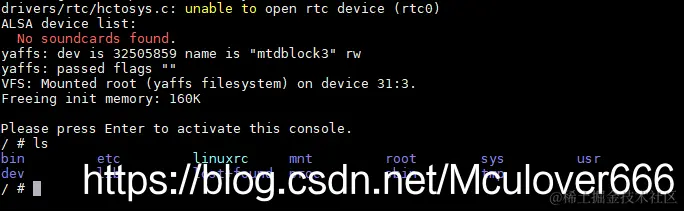成功启动内核,挂载文件系统,进入Linux命令行: