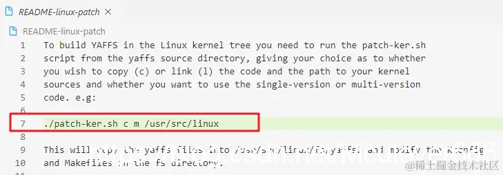 打开yaffs2源码目录下的README-linux-patch文件即可看到打补丁的方法: