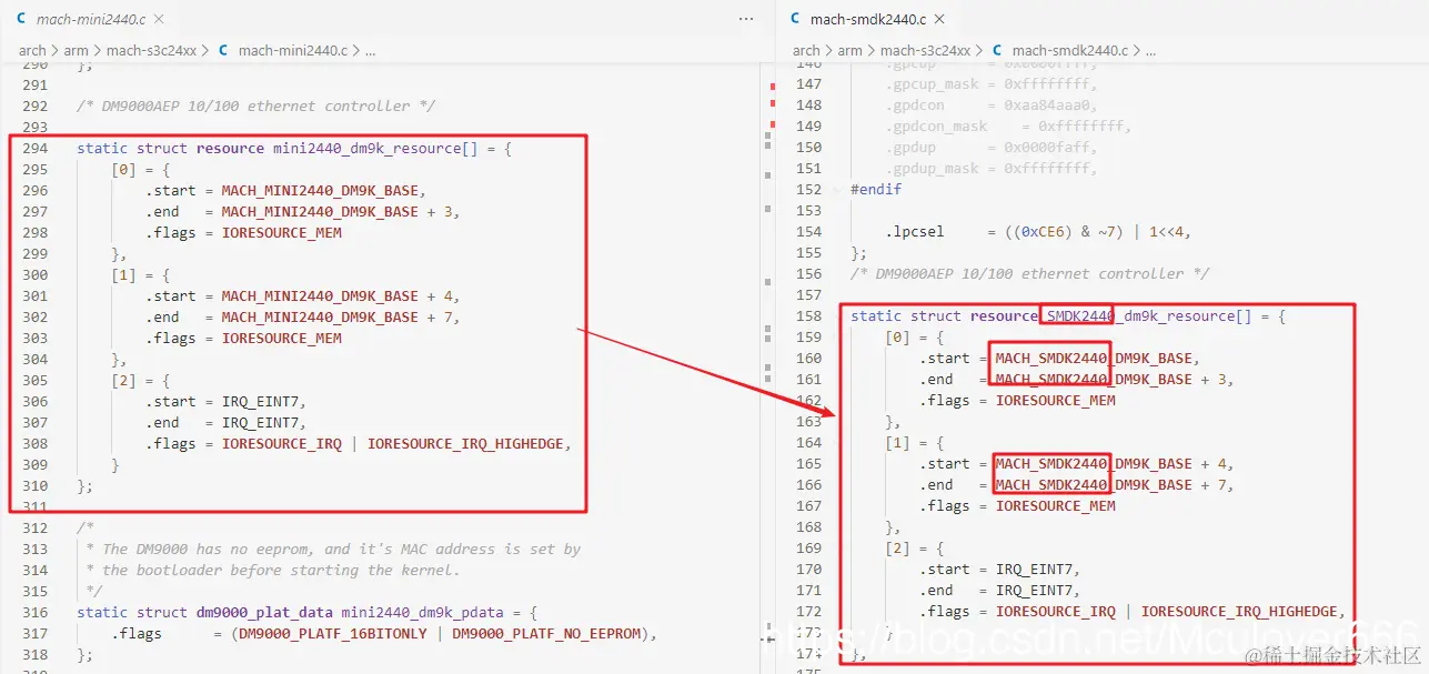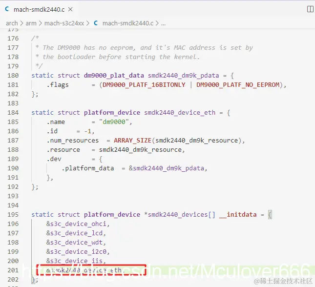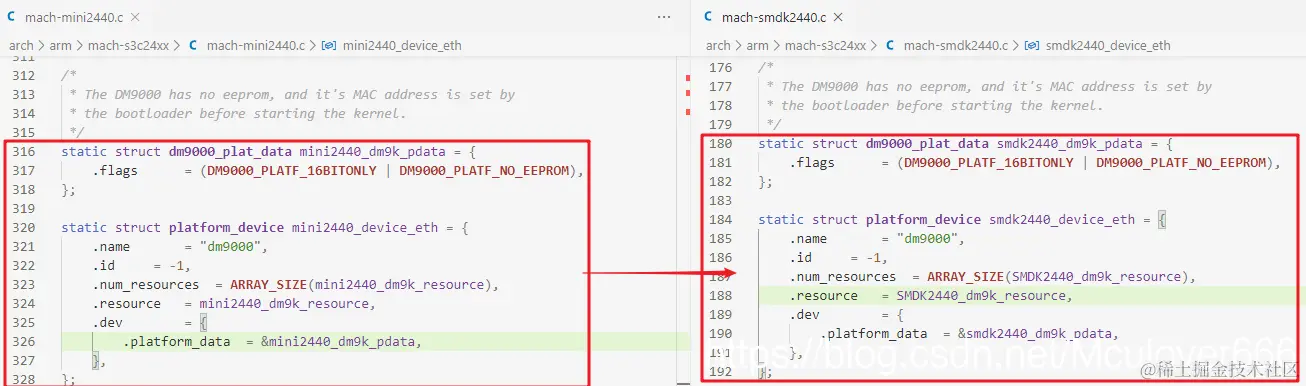 下面将 mach-mini2440.c 中关于网卡的配置代码,移植到 mach-smdk2440.c 中。