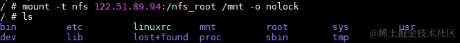 mount -t nfs <Linux主机ip地址>:/nfsroot /mnt -o nolock