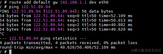 重启之后ping外网测试: