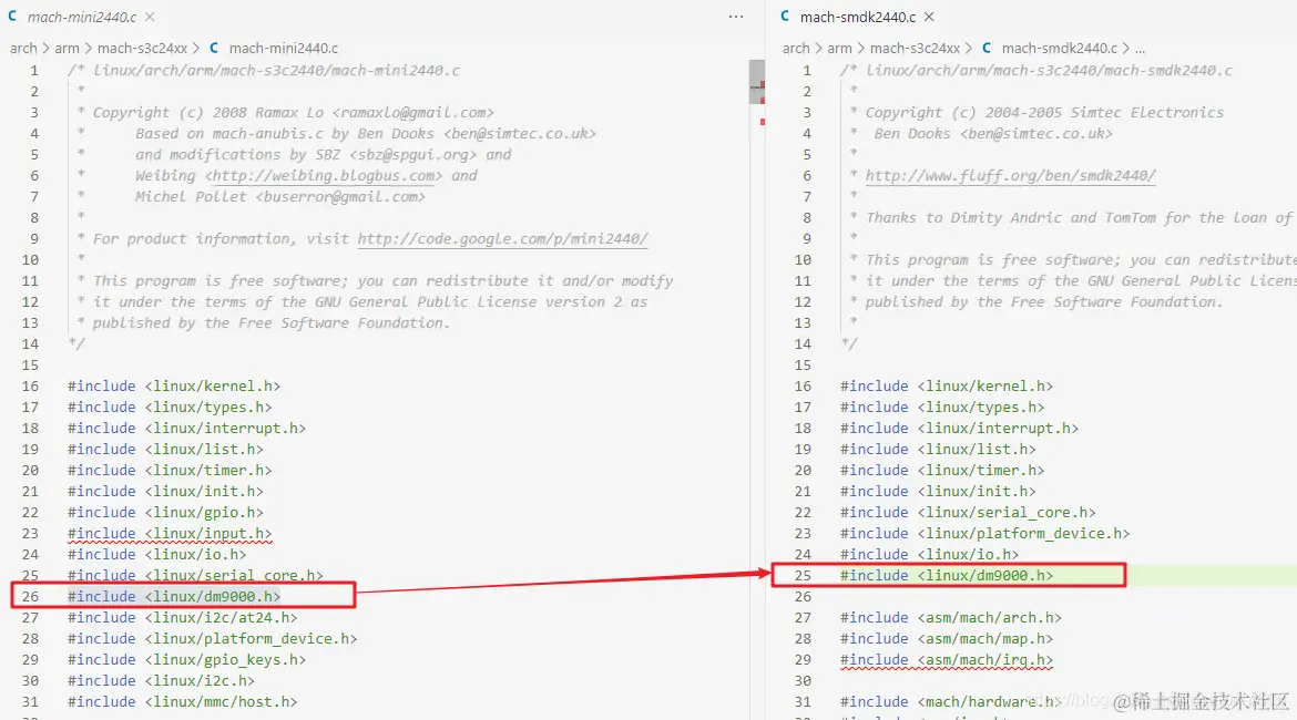 进入内核源码目录里面,找到 arch/arm/mach-s3c24xx/目录并进入,找到如下这两个文件: