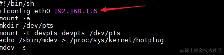 在开发板上使用vi编辑器编辑etc/init.d/rcS文件,添加一条配置命令即可:
