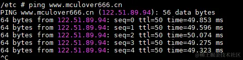 再次进行ping域名测试,成功: