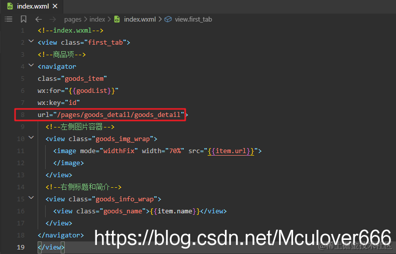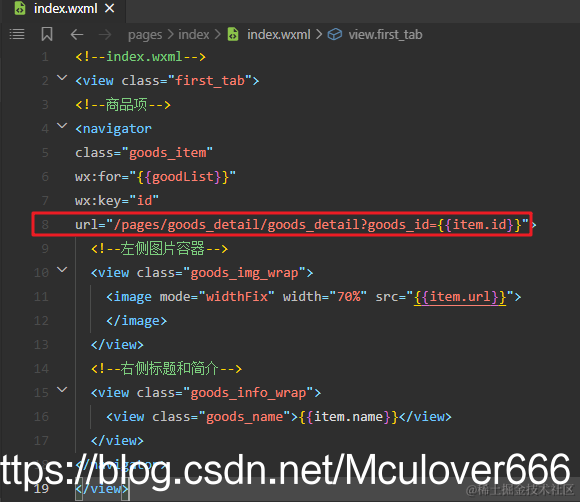 <navigator class="goods_item" wx:for="{{goodList}}" wx:key="id" >