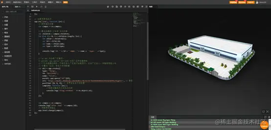 首先将下面的代码输入到项目文件中,即可开启 ThingJS 3D可视化示例园区的场景层级控制功能。