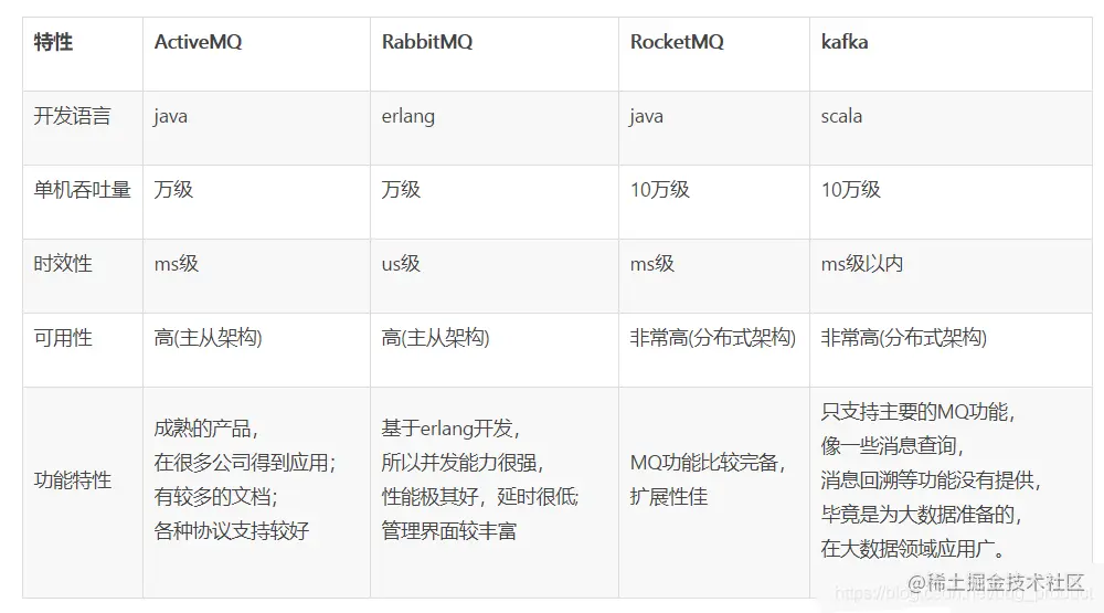 目前业界有很多MQ产品,比较出名的有以下四种: