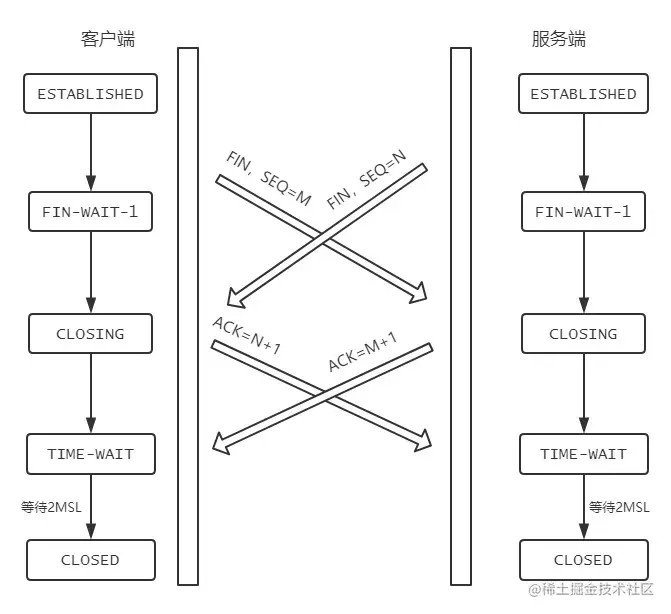 如果客户端和服务端同时发送 FIN ,状态会如何变化?如图所示: