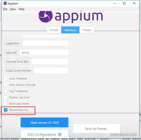 driver.executeScript("mobile:shell",ImmutableMap.of("command","am force-stop com.mob.moblink.demo")); (强行杀掉moblink的进程),使用此方法,在启动appium时必须将Relaxed Security 勾上
