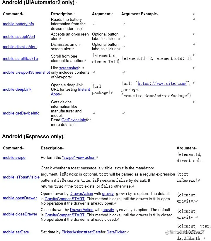driver.executeScript("mobile:deepLink",ImmutableMap.of("url","www.baidu.com","package","com.android.chrome")); (在谷歌浏览器中打开百度页面)