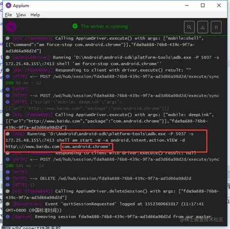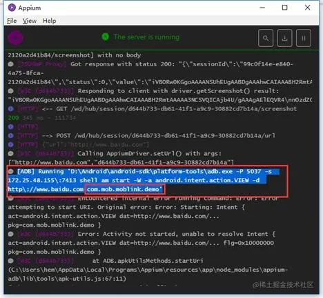 此方法执行时,appium会运行以下命令,可以看到后面带了一个被测APP的包名。