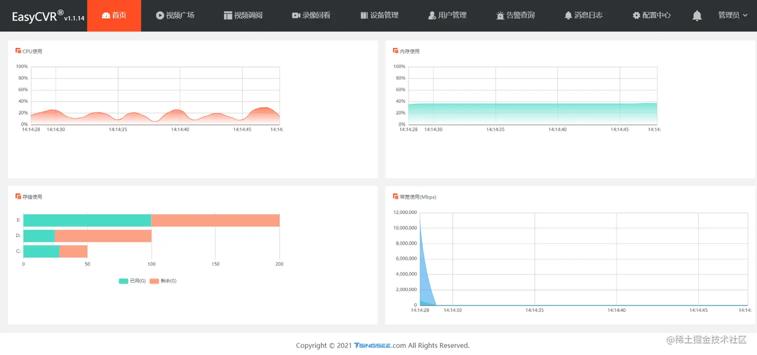 平台化管理便于安保指挥调度,在EasyCVR安防视频云服务平台可以查看实时监控也可以查看录像回放;还可以查看告警信息和人脸智能分析;以数据为基础,实现可视化运行,可对设备状态、数据统计情况等信息进行深度加工,及时掌握平台运行数据,为智能化楼宇安防建设提供有力的数据支撑。