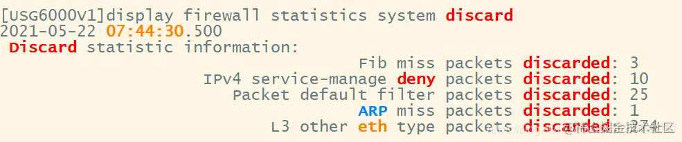 另外,业务不通时,我们还可以从丢包这个角度来排除故障。使用display firewall statistic system discard命令查看防火墙的丢包统计信息,如果发现如下信息,说明防火墙因为无法确认域间关系而丢包。