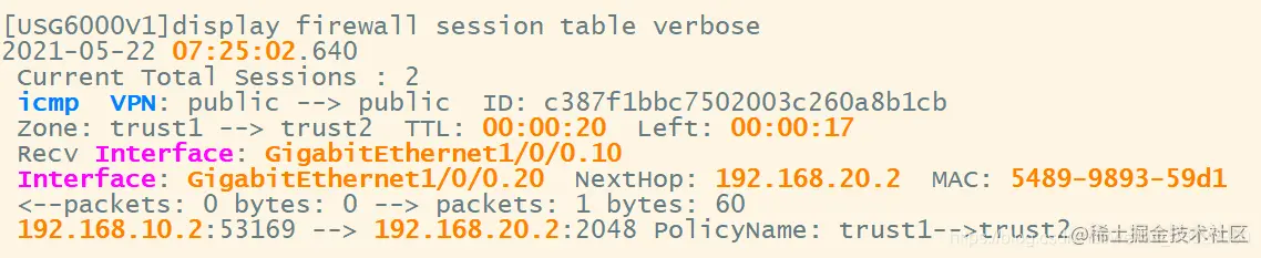 首先是会话的老化时间,即TTL。会话是动态生成的,但不是永远存在的。如果长时间没有报文匹配,则说明通信双方已经断开了连接,不再需要该条会话了。此时,为了节约系统资源,防火墙会在一段时间后删除会话。该时间称为会话的老化时间。