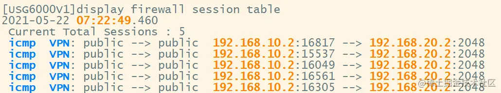 还有一些协议,它们的报文中没有端口信息,防火墙处理这些协议的报文时,如何生成会话表呢?比如ICMP协议,报文中不带端口信息,那么防火墙会把ICMP报文头中ID字段值作为ICMP会话的源端口,会以固定值2048作为I****CMP会话的目的端口。