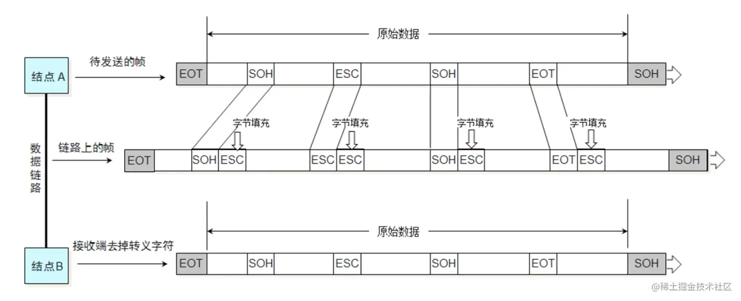 数据部分一旦出现了SOH、EOT,就需要进行转义。