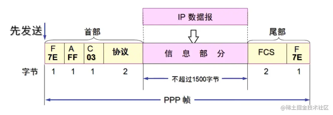 虽然PPP帧和以太网帧的协议不一样,但是网络层的数据是一样的,仅仅是帧的首部和尾部发生了变化。