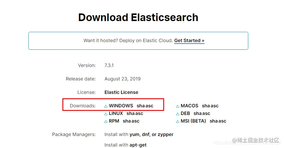 www.elastic.co/downloads/e… 打开界面可以看到最新版本的ES