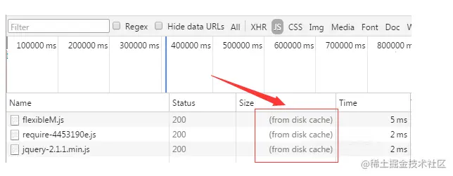 对于强制缓存来说,响应header中会有两个字段来标明失效规则(Expires/Cache-Control),使用chrome的开发者工具,可以很明显的看到对于强制缓存生效时,网络请求的情况。