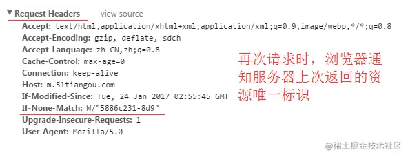 再次请求服务器时,通过此字段通知服务器客户段缓存数据的唯一标识。