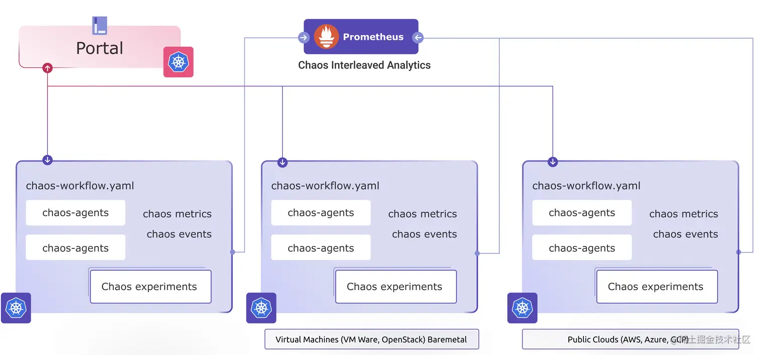 使用 Portal,用户可以在 Agent 上创建和调度新的混沌实验工作流,并从 Portal 上观察结果。用户还可以将更多的集群连接到 Portal,并将 Portal 作为跨云混沌工程管理的单个门户。